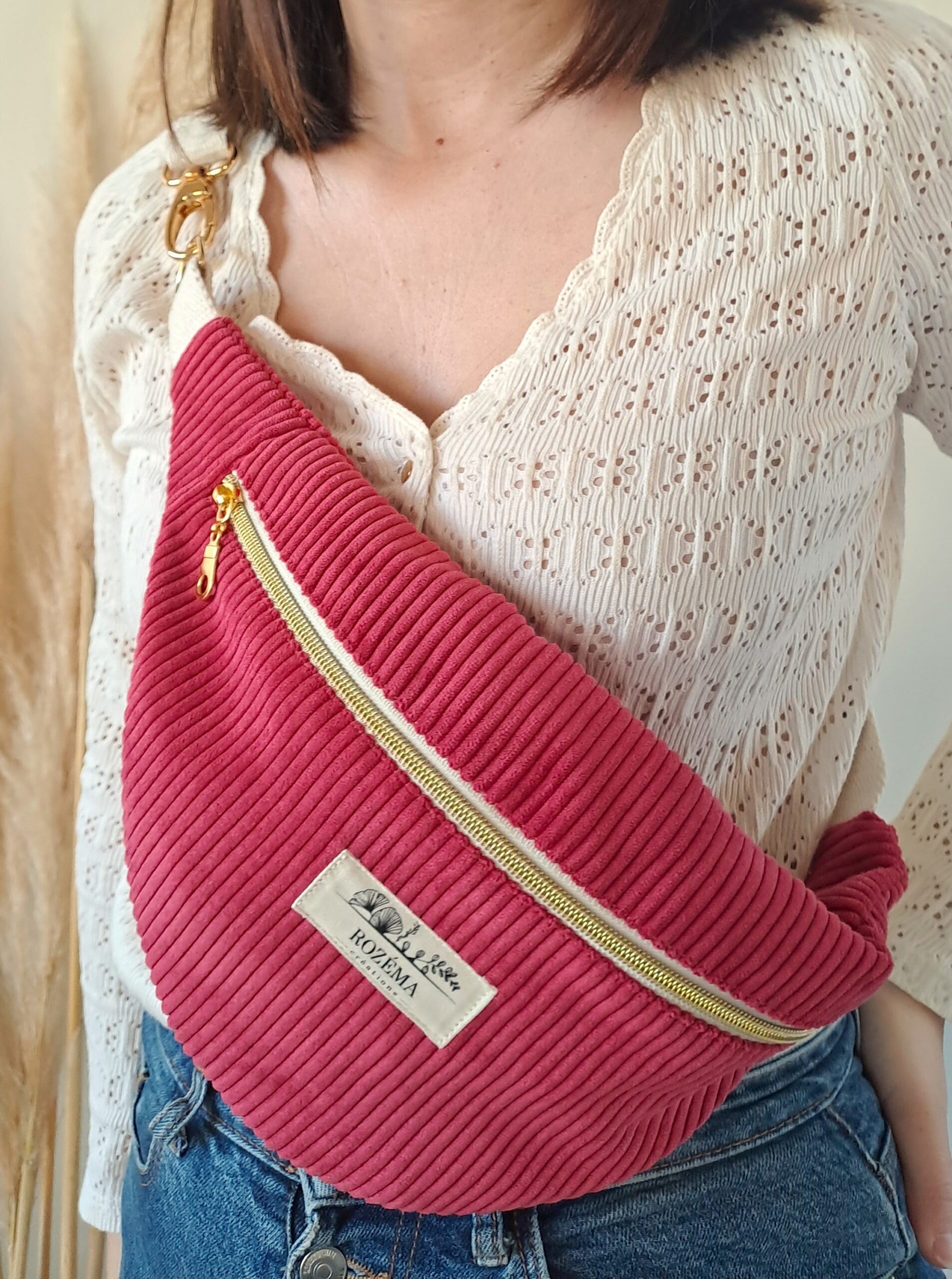 Sac banane Femme en velours côtelé Framboise – Dernières Pièces