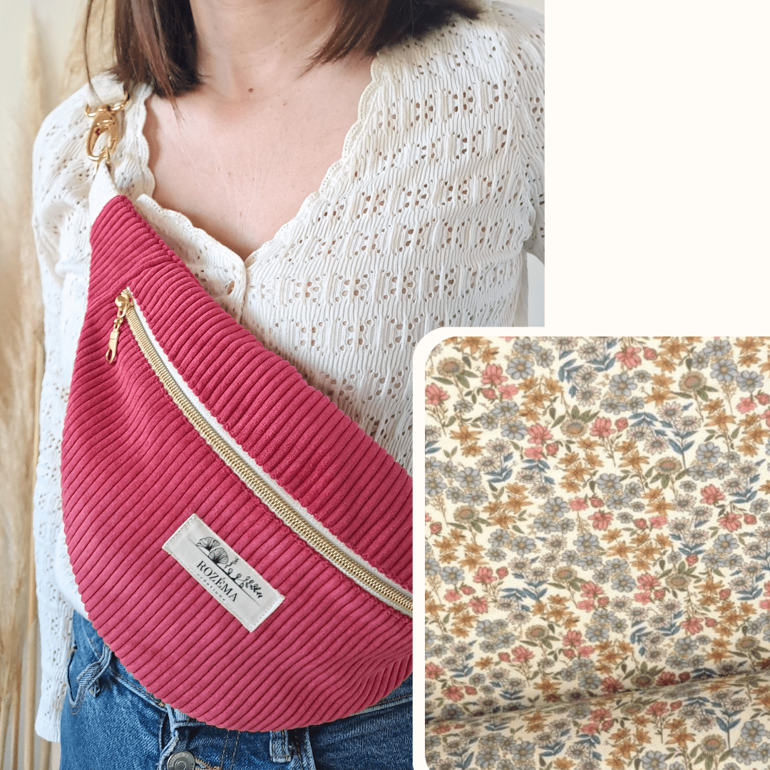 - Tissu Intérieur : 100 % coton à motif fleuri au choix, pour un soupçon de poésie à chaque ouverture. Nos motifs fleuris et colorés ajoutent une touche unique et personnelle à votre sac.
